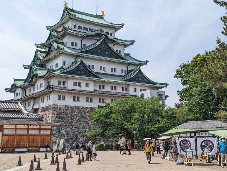 Lâu đài Osaka ( Osaka Castle), nét độc đáo của lâu đài là ở chỗ nó được xây trên hai bệ đá cao tựa vào hai vách tường đá dựng đứng, bao quanh bởi hai con hào và nằm trên một khu đất chỉ rộng 1km2.( Chụp ảnh bên ngoài )